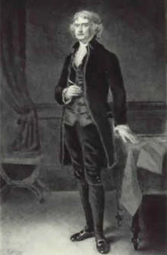 Thomas Jefferson standing, etching by Eliphalet Andrews, 1901