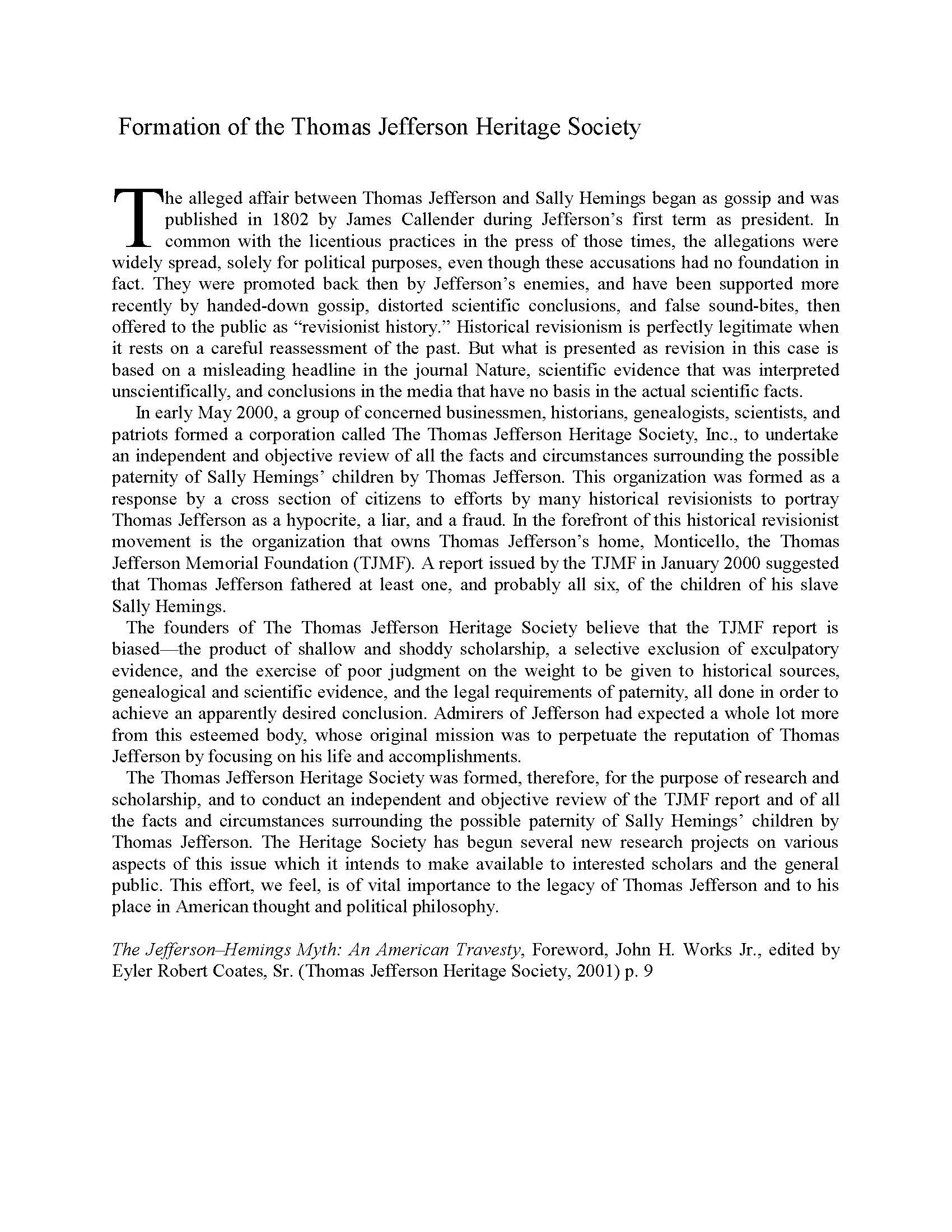 Thomas Jefferson Heritage Society Formed