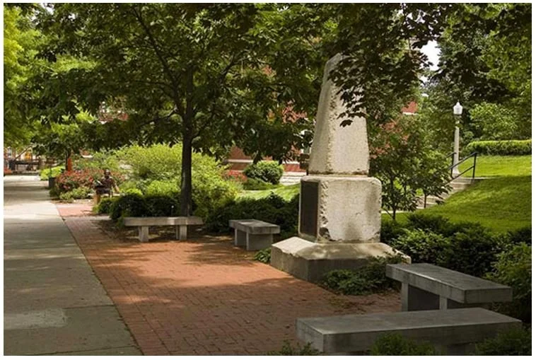 The Columbia Missouri Herald of July 12, 1883, commented: "Welcome then any reminder of Jefferson to Missouri. May these souvenirs be a fresh inspiration to Missourians, not only in maintenance of the true principles which underlie the government which he helped to found, but also of the cause of higher education of which he was of all Americans the most conspicuous pioneer." The marker reads as follows: “Placed at the grave of Thomas Jefferson at Monticello, Virginia, in 1826, constructed from his own design, was presented July 4, 1885, by the Jefferson heirs to the University of Missouri, first state university to be founded in the Louisiana Territory purchased from France during President Jefferson’s administration. The obelisk, dedicated on this campus at commencement, June 4, 1885, commemorates Thomas Jefferson, third President of the United States, whose faith in the future of western America and whose confidence in the people has shaped our national ideals, commemorates the author of the Declaration of Independence and of the Virginia Stature for Religious Freedom, founder of the University of Virginia, and fosterer of public education in the United States.”